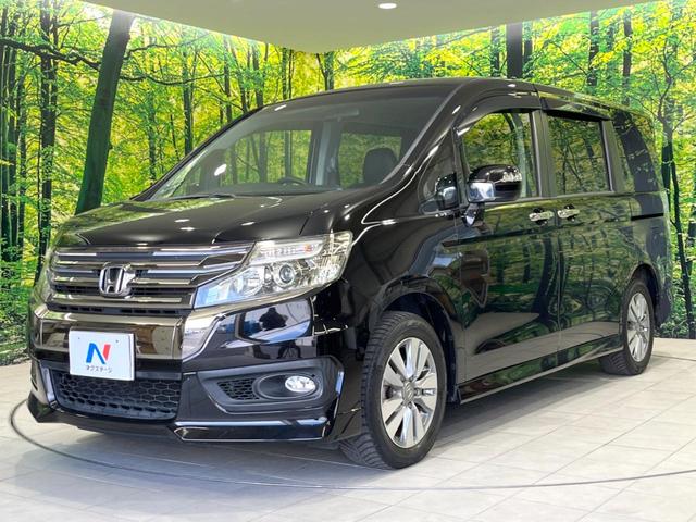 ホンダ ステップワゴンスパーダZ 4WD 両側電動ドア 純正9型ナビ バックカメラ 禁煙車 ハーフレザーシート スマートキー HIDヘッド ビルトインETC クルコン 純正16インチアルミ オートライト オートエアコン