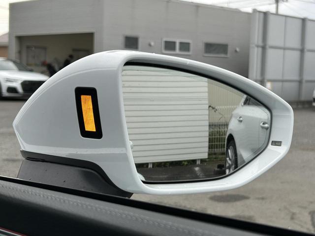 ●アウディサイドアシスト『後方の死角を並走する車両を検知しドアミラーの内側のLEDが点灯。ドライバーに注意を促し事故を未然に防ぐシステムです。』