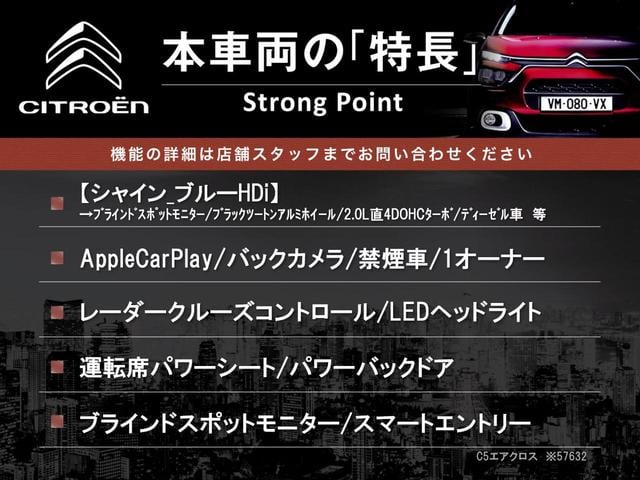 シトロエン C5エアクロスシャイン 禁煙車 AppleCarPlay バックカメラ レーダークルーズコントロール 運転席パワーシート パワーバックドア LEDヘッド ブラインドスポット レーンキープアシスト ETC車載器 1オーナー