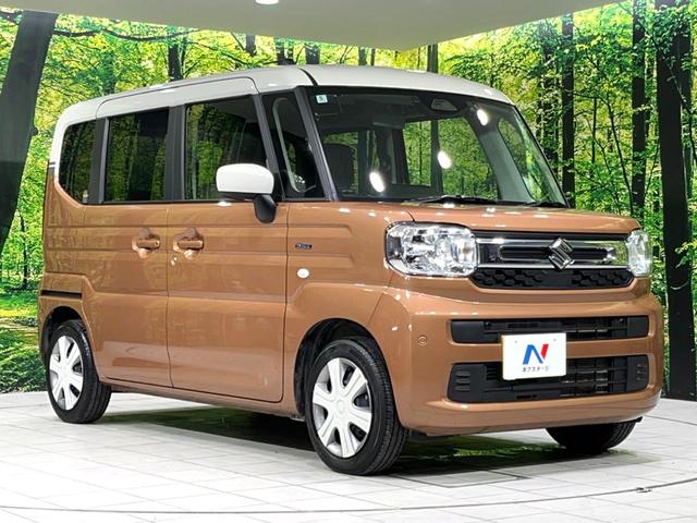 スズキ スペーシアハイブリッドX 4WD SDナビ 2トーンカラー バックカメラ 両側電動ドア 衝突軽減 禁煙車 ドラレコ シートヒーター コーナーセンサー スマートキー LEDヘッド ETC オートハイビーム 車線逸脱警報