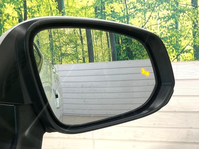 【ブラインドスポットモニター】走行中、ドアミラーの死角になりやすい箇所に後続車が接近するとサイドミラーのレンズに警告を表示!ドライバーに注意喚起をしてくれます。