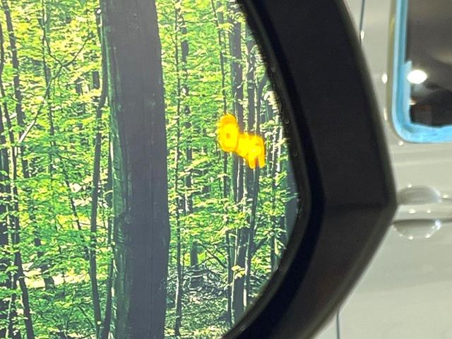 【ブラインドスポットモニター】走行中、ドアミラーの死角になりやすい箇所に後続車が接近するとサイドミラーのレンズに警告を表示!ドライバーに注意喚起をしてくれます。