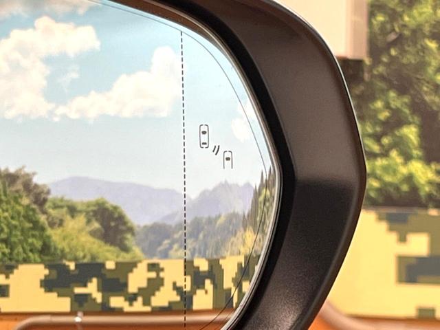 【ブラインドスポットモニター】走行中、ドアミラーの死角になりやすい箇所に後続車が接近するとサイドミラーのレンズに警告を表示!ドライバーに注意喚起をしてくれます。