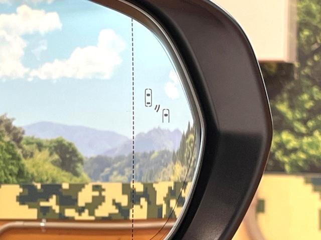 【ブラインドスポットモニター】走行中、ドアミラーの死角になりやすい箇所に後続車が接近するとサイドミラーのレンズに警告を表示!ドライバーに注意喚起をしてくれます。