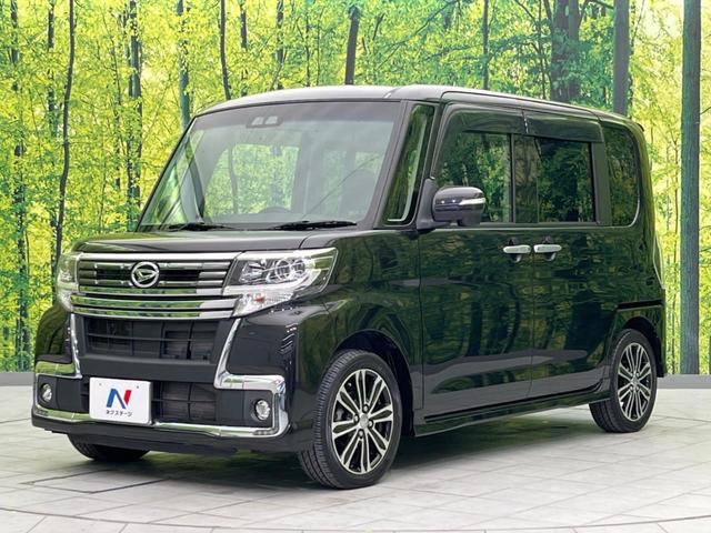 ダイハツ タントカスタムRS トップエディションSAIII ターボ 両側電動スライドドア SDナビ バックカメラ 衝突軽減装置 禁煙車 ハーフレザーシート シートヒーター コーナーセンサー レーンキープ スマートキー LEDヘッド オートマチッックハイビーム