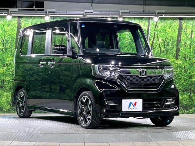 ホンダ N-BOXカスタムG・EXターボホンダセンシング ターボ 両側電動ドア SDナビ バックカメラ 衝突被害軽減システム 禁煙車 ハーフレザーシート コーナーセンサー スマートキー LEDヘッド ビルトインETC 純正15インチアルミ オートハイビーム