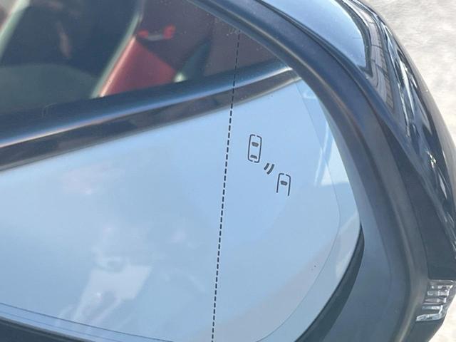 【ブラインドスポットモニター】走行中、ドアミラーの死角になりやすい箇所に後続車が接近するとサイドミラーのレンズに警告を表示!ドライバーに注意喚起をしてくれます。