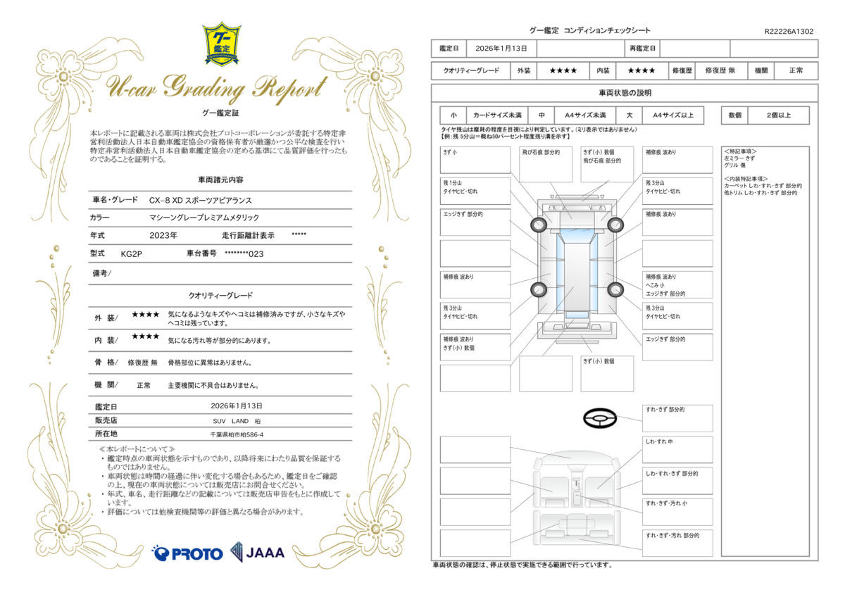 全店、修復歴車は販売しておりません。どなたでも安心してお選びいただけます。