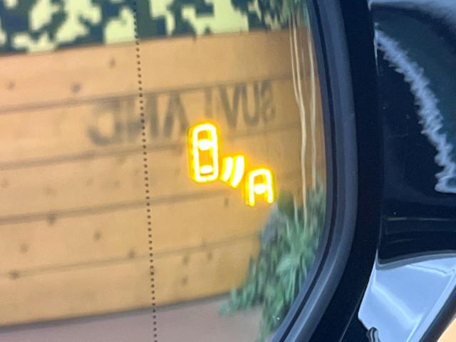 【ブラインドスポットモニター】走行中、ドアミラーの死角になりやすい箇所に後続車が接近するとサイドミラーのレンズに警告を表示!ドライバーに注意喚起をしてくれます。