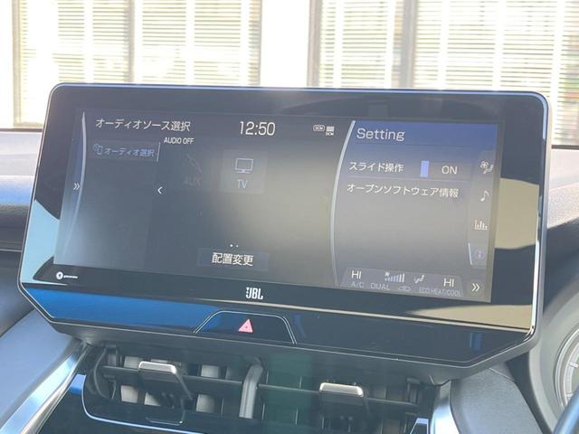 トヨタ ハリアーZ 調光パノラマルーフ 純正12.3型ナビ 全周囲カメラ JBLサウンド セーフティセンス レーダークルーズ 禁煙車 ハンズフリーパワーバックドア ハーフレザーシート パワーシート LEDヘッド ETC