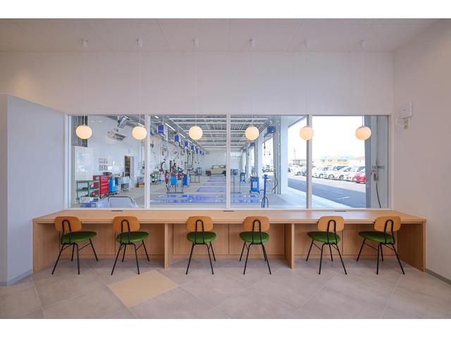 大型のピットを完備。車検・板金などお気軽にご相談下さい♪整備中の愛車を店内からご覧いただけます。