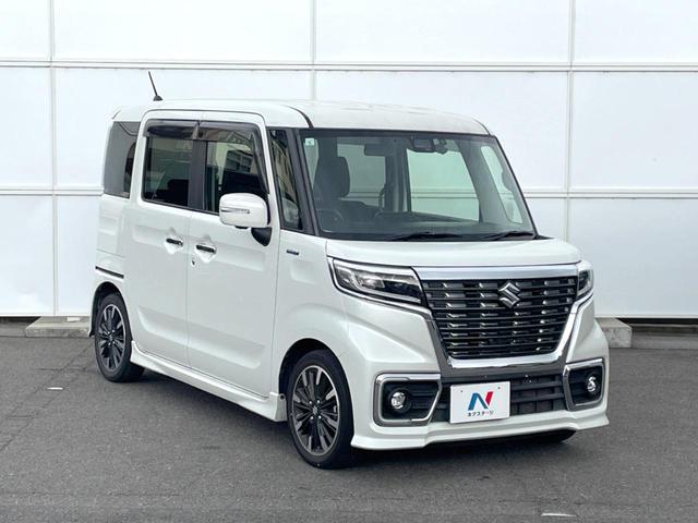 スズキ スペーシアカスタムハイブリッドXSターボ ターボ 両側電動ドア 純正SDナビ 全周囲カメラ 衝突被害軽減システム 禁煙車 ハーフレザーシート シートヒーター ドラレコ コーナーセンサー スマートキー LEDヘッド ビルトインETC クルコン