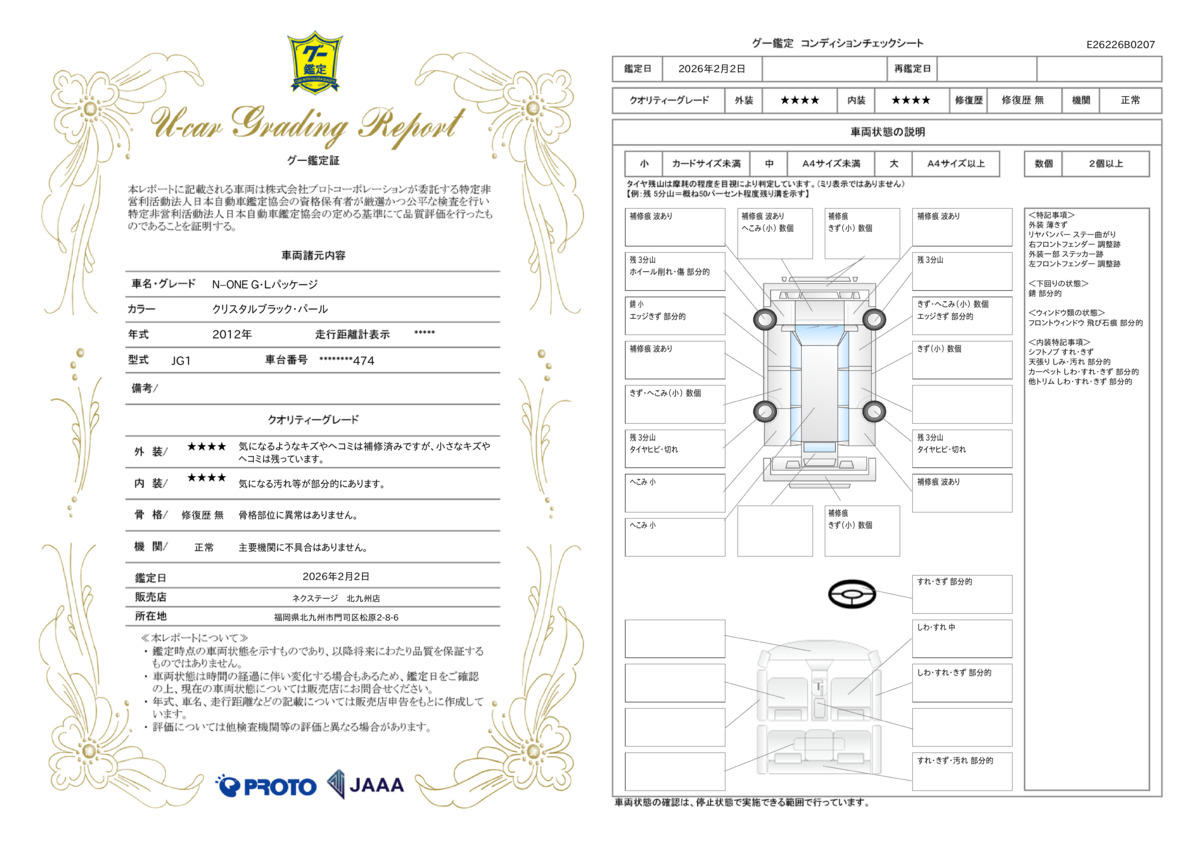 弊社では、全車『修復歴なし』のお車のみ取り扱っております。専任バイヤーによる厳選した仕入れの後、入庫後の車両チェックを行い、ネクステージが認定した高品質な中古車をご提供しております。