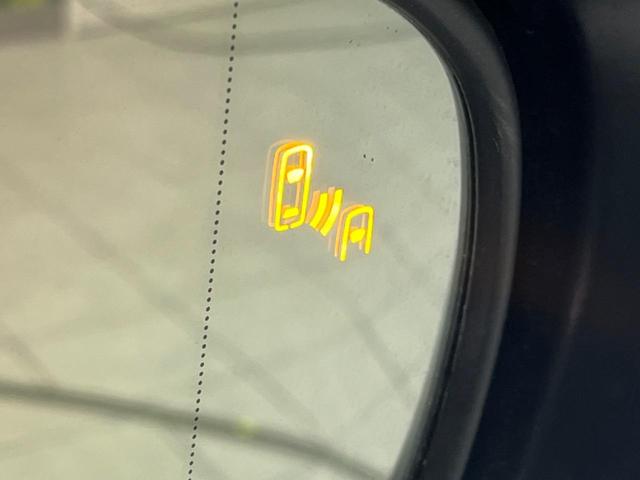【ブラインドスポットモニター】走行中、ドアミラーの死角になりやすい箇所に後続車が接近するとサイドミラーのレンズに警告を表示!ドライバーに注意喚起をしてくれます。