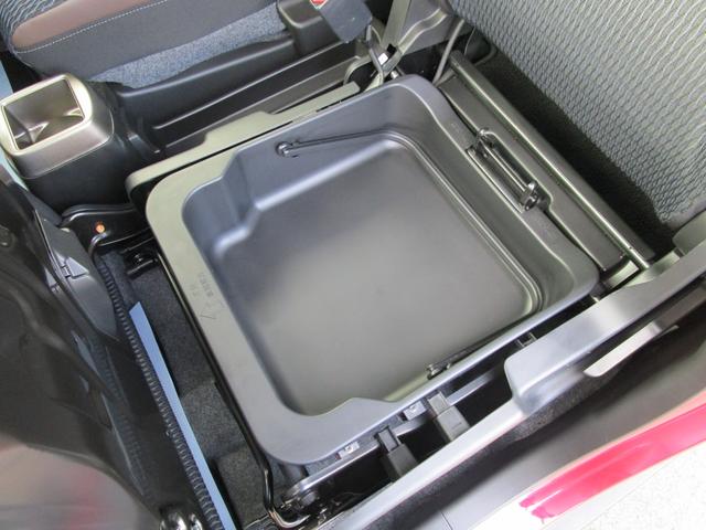 助手席のシート下にも収納スペースがあります!取っ手が付いているのでこのまま持ち出せます。また、水洗い可能なので雨の日の長靴や汚れたお子様の靴などを置けて便利です♪