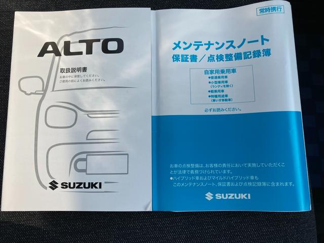 スズキ アルトA 2型 ディスプレイオーディオ バックカメラ オートライト パワーウィンドウ 衝突被害軽減システム アイドリングストップ 横滑り防止機能 衝突安全ボディ 取扱説明書 メンテナンスノート