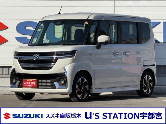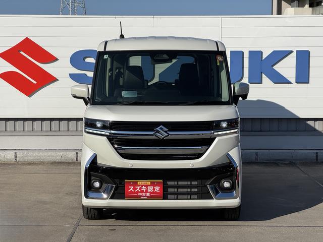 スズキ スペーシアカスタムHYBRID XS 4WD DSBSII/電動スライドドア デュアルセンサーブレーキサポートII アダプティブクルーズコントロール 電動スライドドア 電動パーキングブレーキ シートヒーター ステアリングヒーター オートライト プッシュスタート オートエアコン