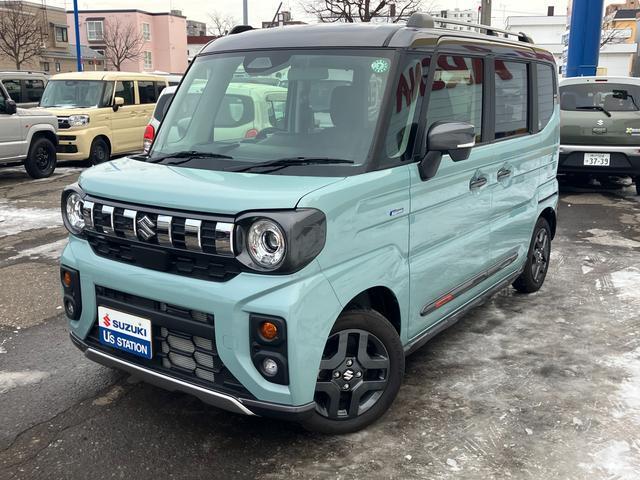 スズキ スペーシアギアHYBRID XZ 4WD 別途当社パックで快適に! アルミホイール LEDヘッドランプ LEDフォグランプ SRSエアバック オートライト イモビライザー キーレスプッシュ シートヒーター 衝突被害軽減ブレーキ 後退時ブレーキサポート