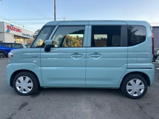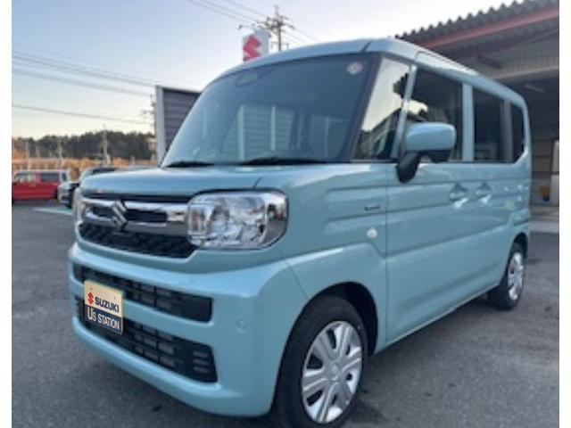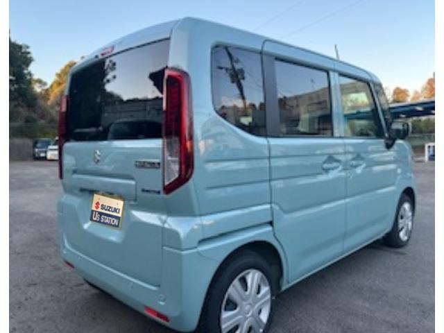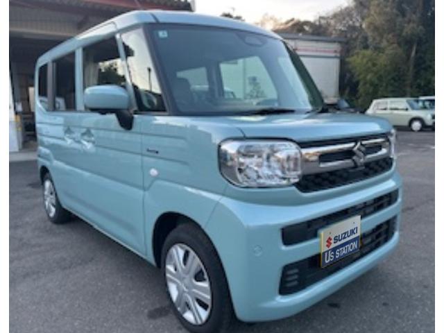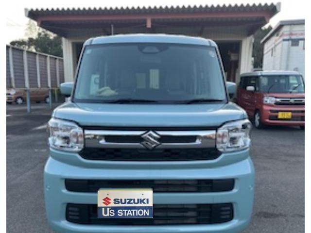令和7年式 スペーシア ハイブリッドG 入荷。 色は オフブルー♪ 衝突被害軽減ブレーキ 全方位ナビ スズキコネクト ESP