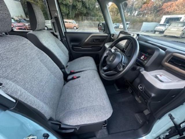 フロントシートはベンチシートです。インパネシフトで足元は広々。運転席と助手席はウォークスルーできます。