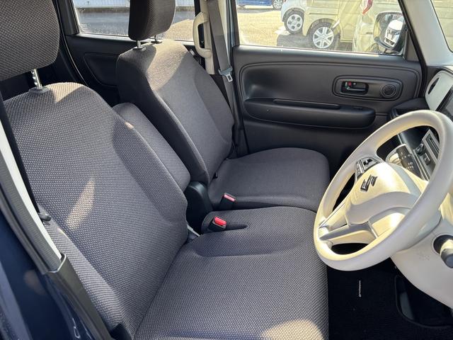フロントシートはベンチシートです。インパネシフトで足元は広々。運転席と助手席はウォークスルーできます。