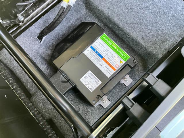 ハスラーとハイブリッドのエンブレム。減速時のエネルギーを利用して発電し、加速時にはその電力を活かしてモーターをアシストする、マイルドハイブリッドを搭載!