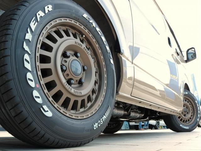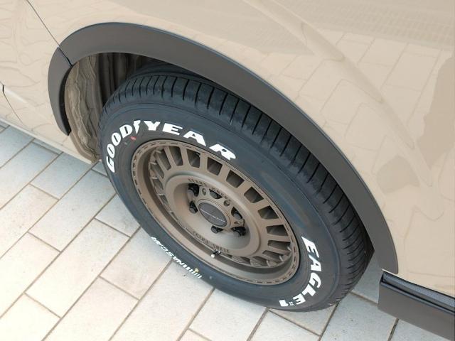 足元にはFLEXネクサスクレスト(デザートゴールド)16インチアルミホイール&グッドイヤーナスカータイヤを装着!