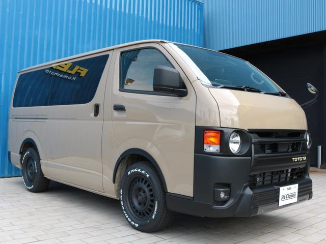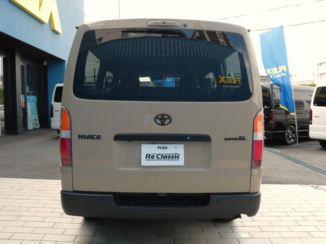 トヨタ ハイエースバンロングスーパーGL アースカラーベージュ Reクラシック丸目カスタム アルパイン11インチナビ Tフォーススポイラー オバフェン ネクサスクレストAW クラシックテール クラシックシートカバー クラシックベッド PVM