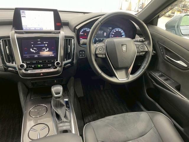 トヨタ クラウンハイブリッドRSアドバンス ヘッドアップディスプレイ/ブラインドスポット/デジタルインナーミラー/全周囲カメラ/シートヒーター/パークアシスト/レーダークルーズ/フルセグTV/ステアリングヒーター/クリアランスソナー