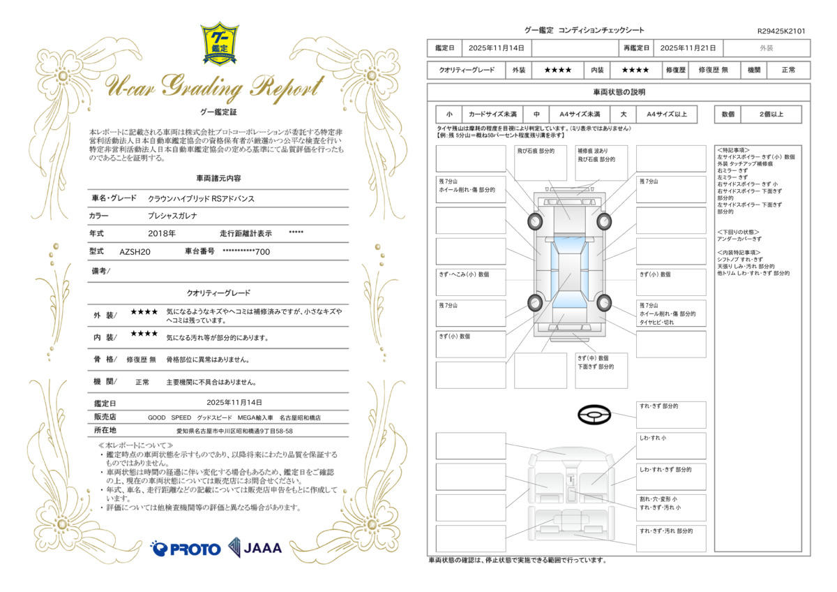 | 内容 | 業界高水準、最長保証期間はなんと15年。保証項目406部位。任意による1年毎の更新が可能な新しいアフターサービス「GOOD SPEEDオリジナル プレミアムワランティー」をご用意させて頂いております。 |