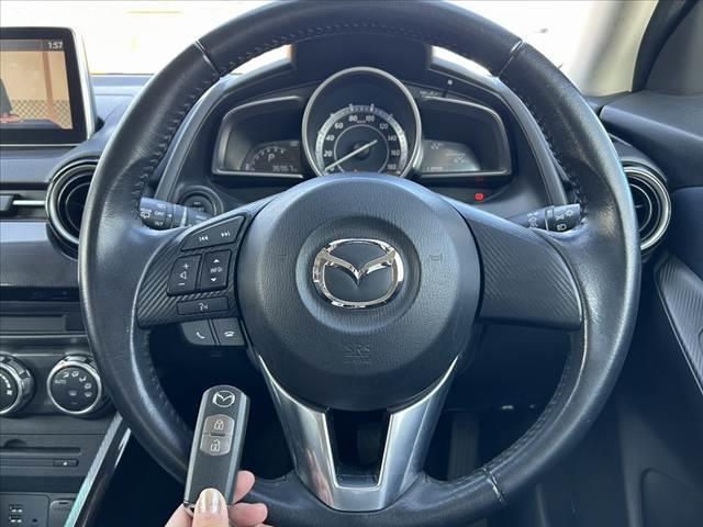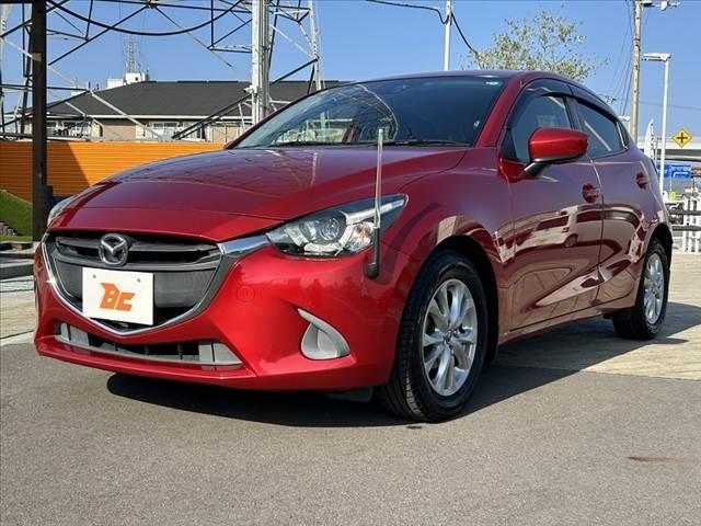 マツダ デミオ13S 禁煙車 車検整備付 シティブレーキ オートLED AAC スマートキー OP15インAW 革巻きステア 純正SDナビ フルセグ BT DVD Bカメラ ステリモ ETC Pガラス Aストップ