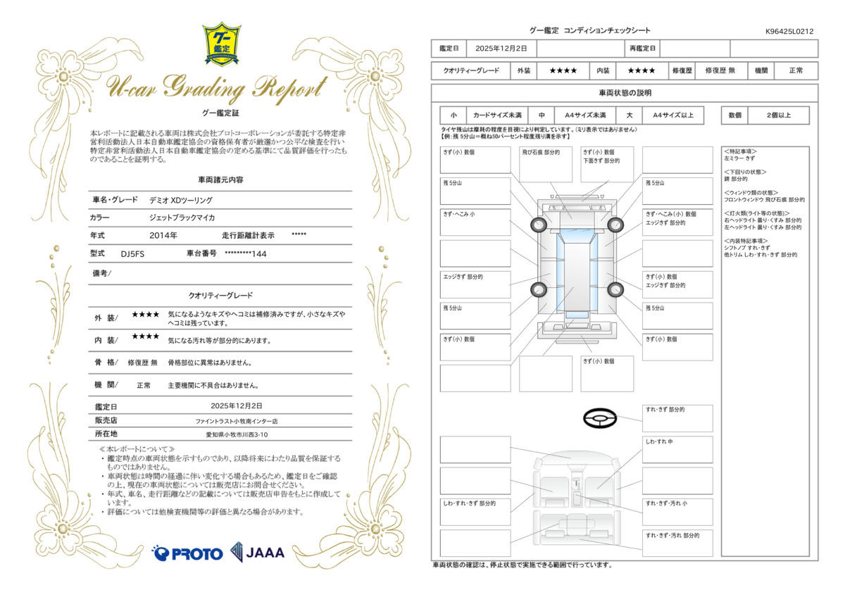 | 車台番号下3桁 | 144 | 全体のサイズ | - / - / - |