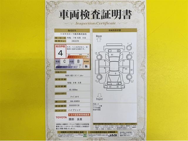 トヨタ自動車が認定した検査員が、厳正に検査した車両検査証明書を発行しています。キズの程度や場所を展開図で分かりやすく表示しているのでおクルマの状態がすぐ分かります。