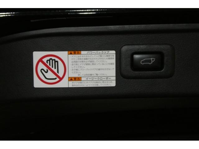 バックドアの底部にパワーバックドアとイージークローザーの取り扱いに関する説明と注意を記入したシールが貼ってあります。シールの横にパワーバックドアのスイッチが付いてます