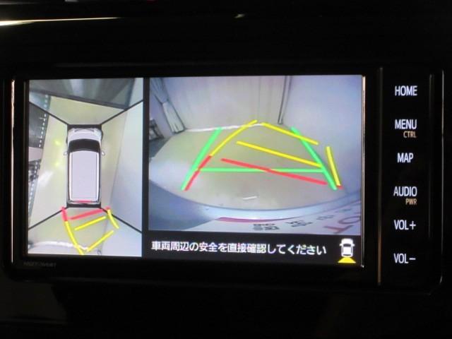 パノラミックビューモニター付きです。車両を上から見たような映像をナビゲーション画面に表示。運転席からの目視だけでは見にくい、車両周辺の状況をリアルタイムでしっかり確認できます。