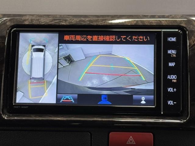 パノラミックビューモニターシステムが付いているので車の上から見た映像が確認できますよ。 一目で車両周辺の情報を確認できますが、直接安全をご確認下さい。