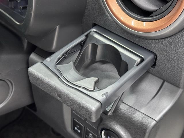 カップホルダーです。 長い間乗っていると沢山置く場所が欲しくなりますよね。 缶ジュースを開けて運転していると振動で倒れないかヒヤヒヤしちゃいますよね。 意外に無いと困る装備ですよね。