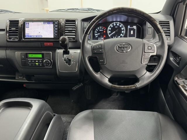 トヨタ ハイエースバンスーパーGL ダークプライムII LEDヘットライト メモリーナビゲーション ミュージックプレイヤー接続可 スマキー ABS フルフラット 盗難警報装置 運転席エアバッグ リアクーラー ワンセグ オートエアコン パワーウインドウ