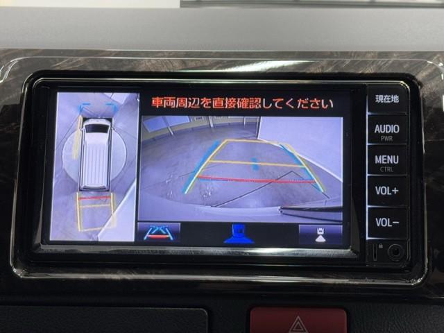 パノラミックビューモニターシステムが付いているので車の上から見た映像が確認できますよ。 一目で車両周辺の情報を確認できますが、直接安全をご確認下さい。