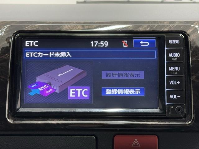 ナビ画面に連動したETCを装備しています。 過去に利用した利用料金も一目で分かって、とっても便利です。 ETCの抜き忘れ、挿し忘れも警告してくれるので安心ですね。