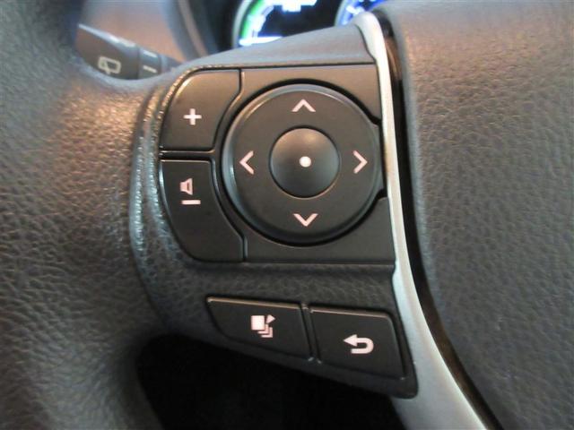 ハンドルに装備されたステアリングスイッチ。主にナビやオーディオと連携して操作出来ます。