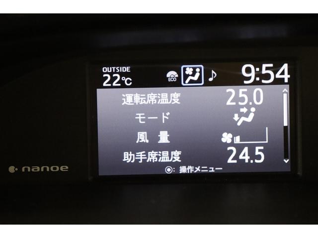 デザイン性の高いパネルのエアコンは左右個別の設定が出来ます。場所や個人の体感による温度差も解消できて快適です。ナノイー搭載車ですので、肌や髪に優しいナノイーが室内を爽やかな空気環境にしてくれます。