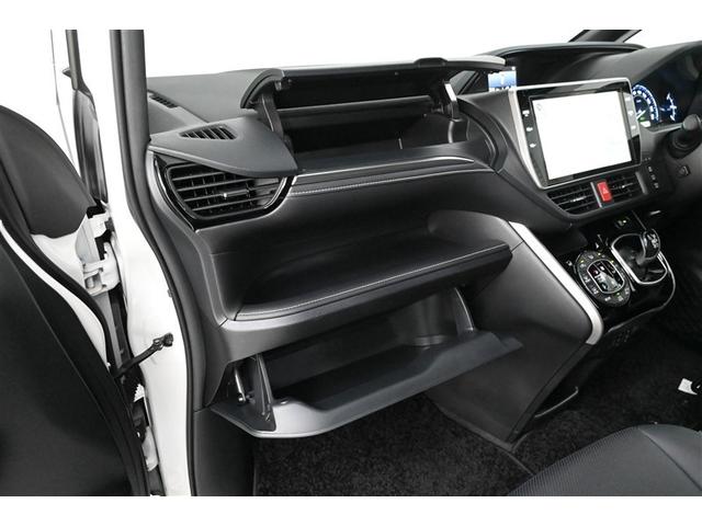 助手席側には、上段と下段にリッド付きグローブボックスを備え、中段にはオープントレイがある、3段の大型収納スペースを確保しています。