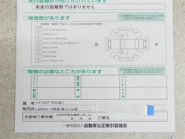 | 法定整備について | 法定12ヶ月点検相当の整備に加え、ナビやオーディオ等も、もれなく点検。点検整備後、オイルやワイパーゴム等の消耗部品は事前に交換しています。※新しい車両、交換間もない車両など一部例外もございます。 |