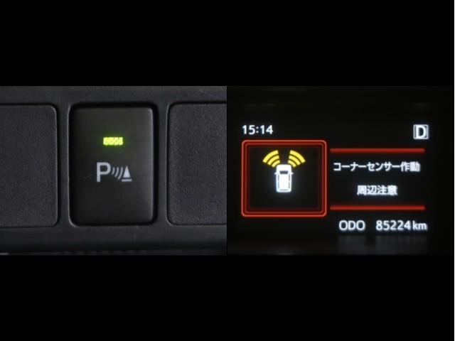 コーナーセンサーを車の前後に装備。障害物までの距離に応じて警告音を変えてお知らせ。縦列駐車時や駐車場・車庫等での取り回しをサポートします。詳細は販売店スタッフまでお尋ね下さい。