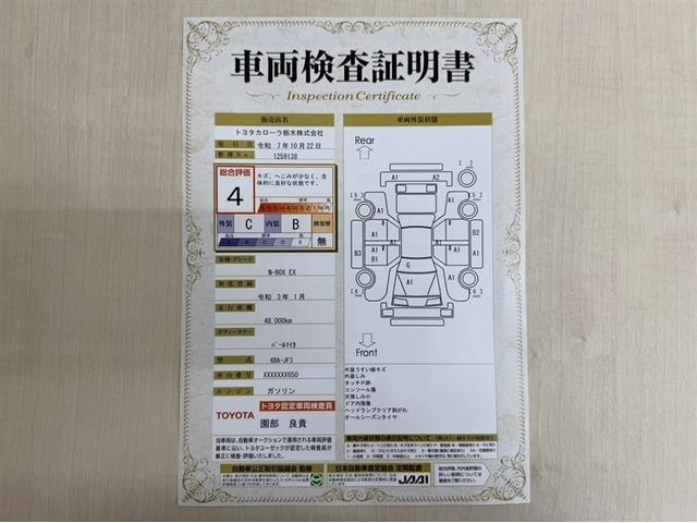 トヨタ自動車が認定した検査員が、厳正に検査した車両検査証明書を発行しています。キズの程度や場所を展開図で分かりやすく表示しているのでおクルマの状態がすぐ分かります。