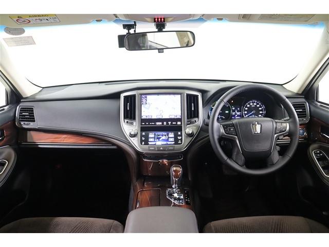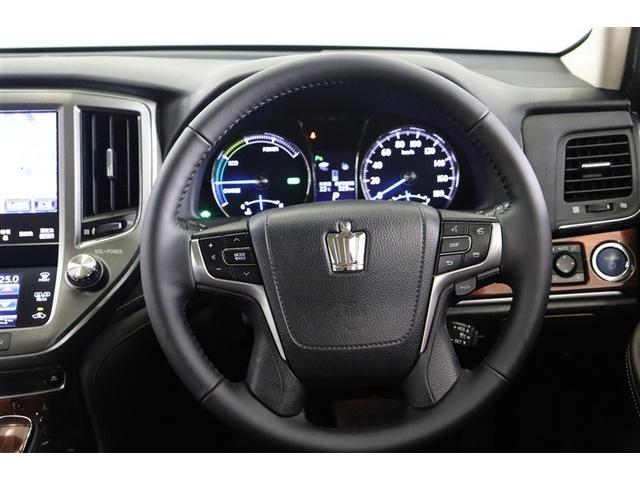 トヨタ クラウンハイブリッドロイヤルサルーン 点検記録簿 フルセグテレビ Bカメラ DVD再生機能 盗難防止システム スマキー オートクルーズコントロール 電動パワーシート ESC ETC付き アルミホイール カーテンエアバッグ エアコン PW