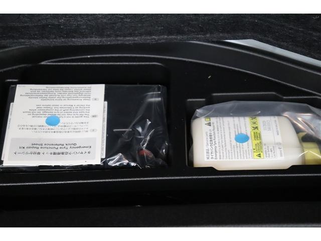 パンク修理キットを装備しています。最近は未使用のままで廃棄となるスペアタイヤが多いので、エコの観点からパンク修理キット付が増えています。軽量化によって燃費の向上にも一役かっているそうです。