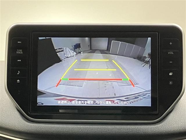 こちらのバックカメラは画面にラインが表示されておりますので、バック時のクルマの進行方向の目安になります。より高いレベルで車庫入れをサポートする、便利な機能ですね。