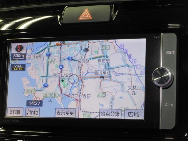 フルセグテレビ・CD・DVDもお楽しみいただけるトヨタ純正ナビゲーション(NSZT-W62G)付きです。